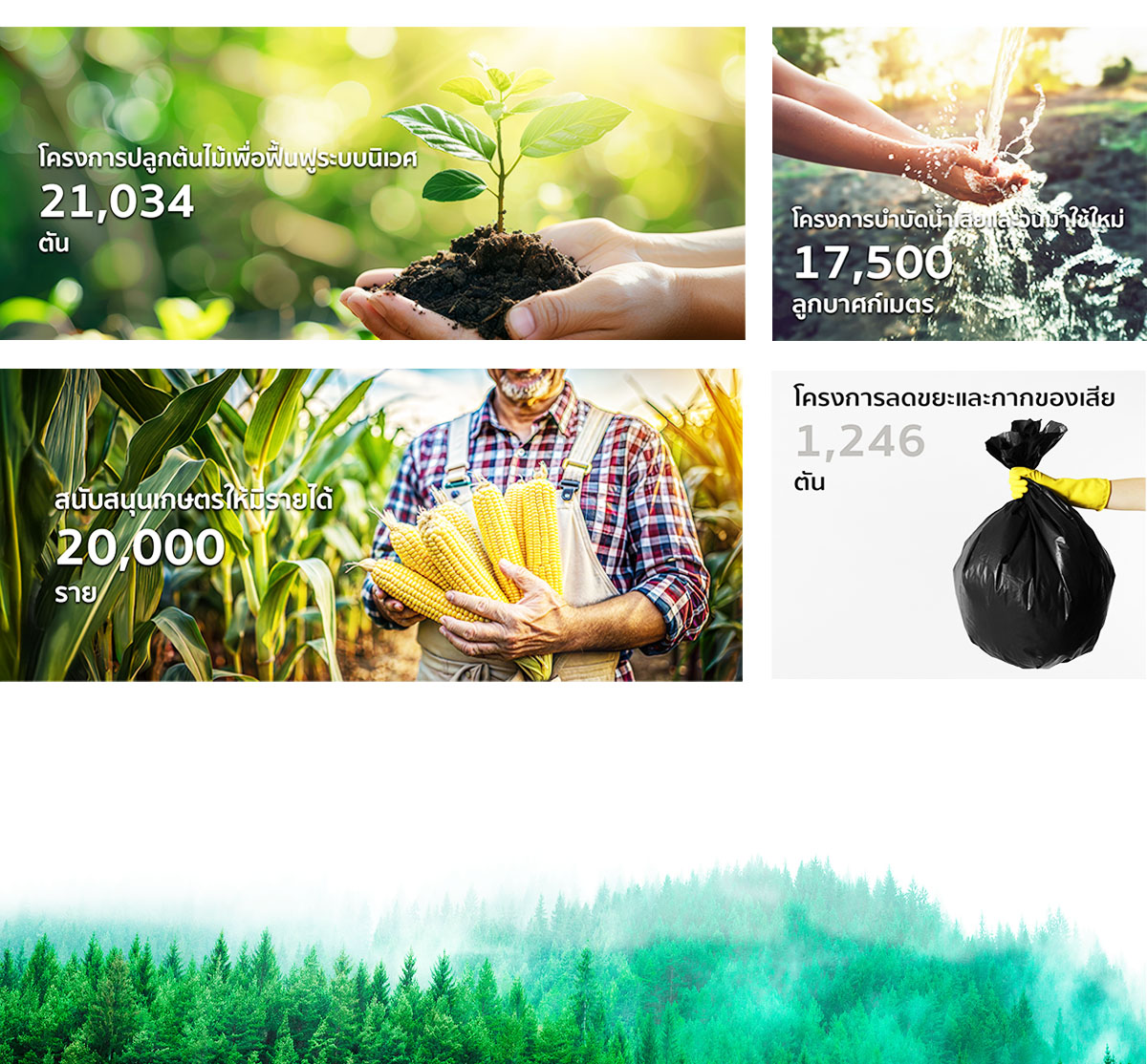 เราเลือกใช้วัตถุดิบผลิตอาหารสัตว์คุณภาพ จากเกษตรกรในพื้นที่ในประเทศเพื่อควบคุมคุณภาพและเพิ่มรายได้ให้กับเกษตรกรเรามีโครงการต่างๆเพื่อส่งเสริมทักษะ สร้างรายได้ให้กับพนักงาน และจัดสรรที่ดินให้พนักงานได้พักอาศัย