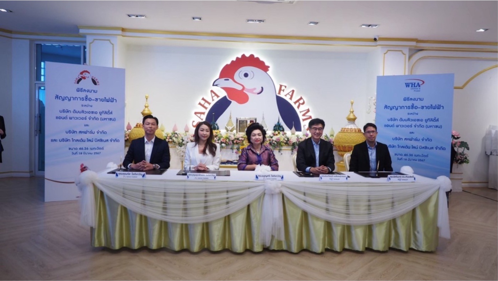 สหฟาร์ม จ ากัด และ บริษัท โกลเด้น ไลน์ บิสซิเนส ลงนามในสัญญาซื้อขายไฟฟ้า WHAUP